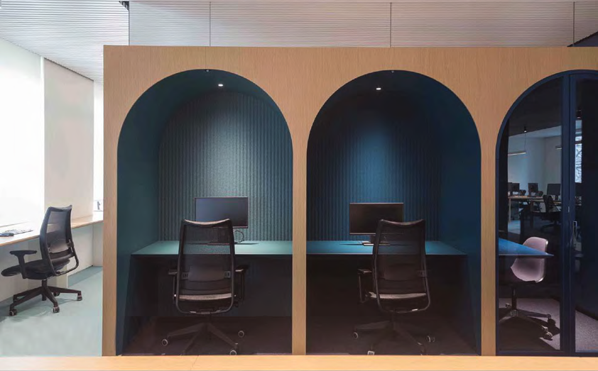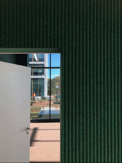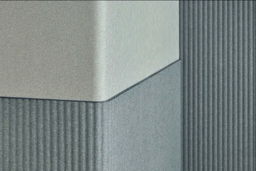 Single-material sound absorbing thermoformed panel. Apply to the wall with velcro. Can be cleaned with a vacuum-cleaner with a smooth spout or brush with soft bristles or by professional upholstery cleaners.