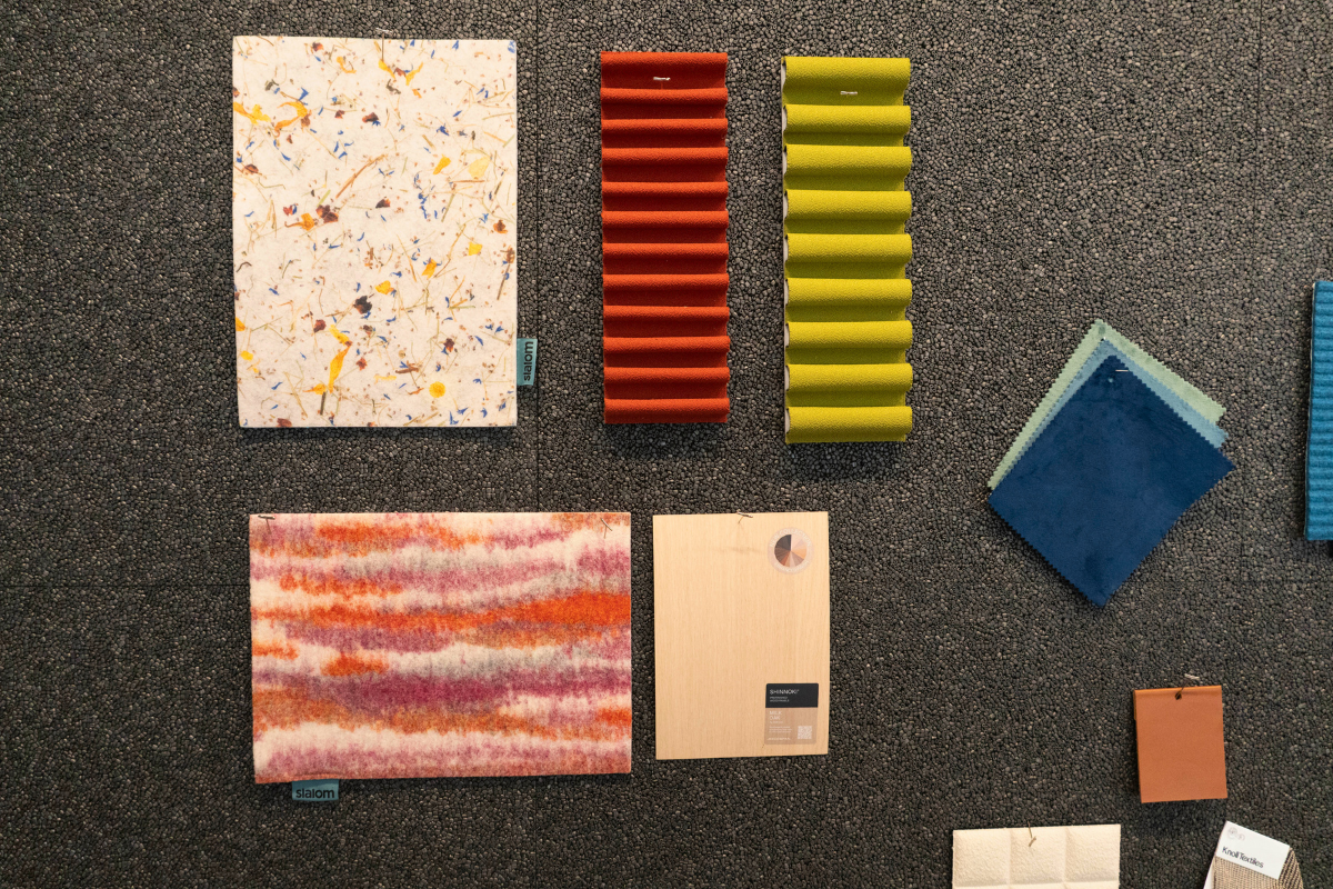 TAC combines great acoustical performance and sleek looks with a highly effective tackboard surface. The material is a work-horse: lightweight, mildew and moisture-resistant, waterproof, A fire-rated, immanently useful, and aesthetically pleasing.